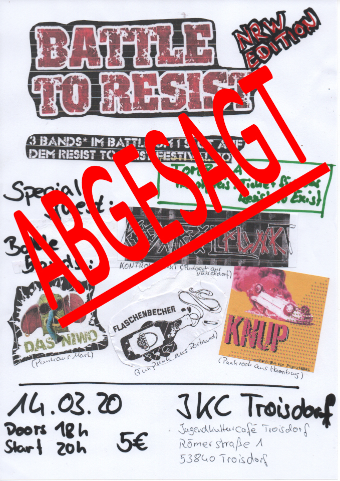 leider müssen wir das Battle to Resist NRW EDITION kurzfristig absagen.