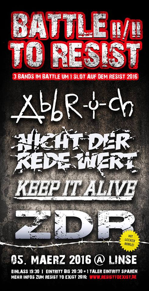 3 Bands im Battle um 1 Slot des RESIST TO EXIST FESTIVALS 2016!