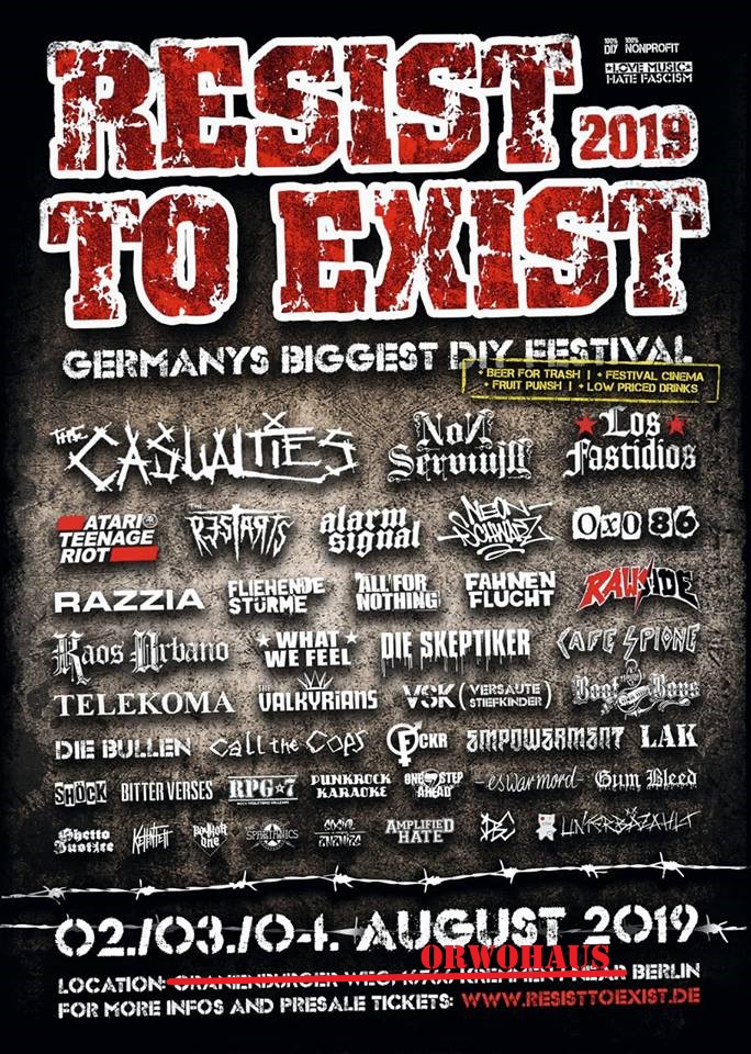 - 29.07.19: RBB 24 – Punkfestival „Resist to Exist“ zieht zurück nach Berlin