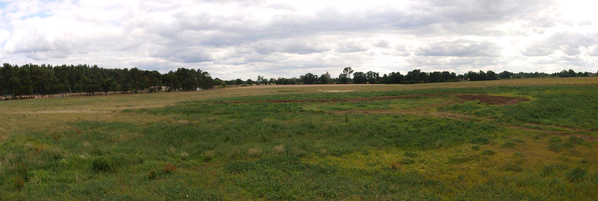 Panoramaaufnahme vom Bühnengelände (rechts) mit einem Stück Zeltplatz (links).