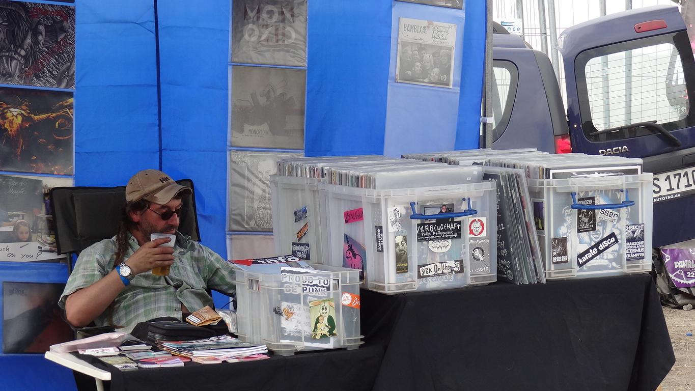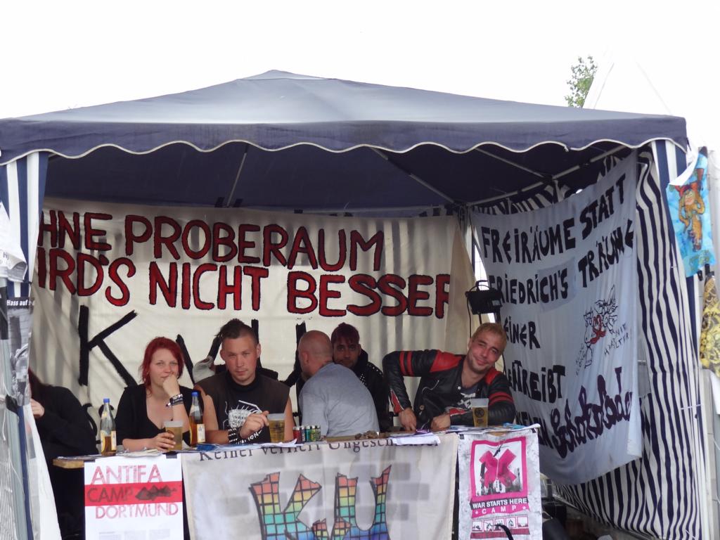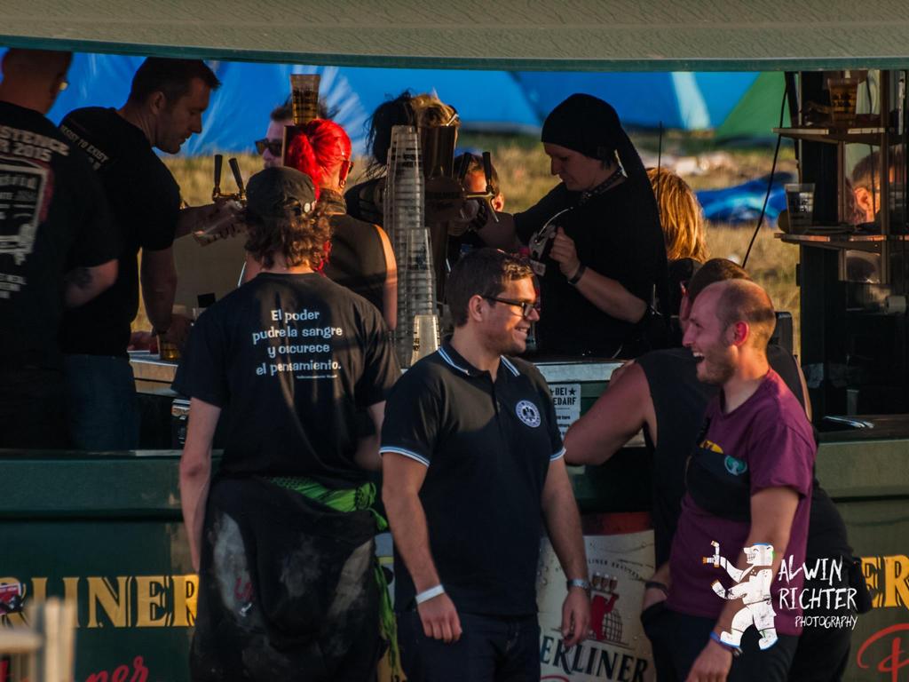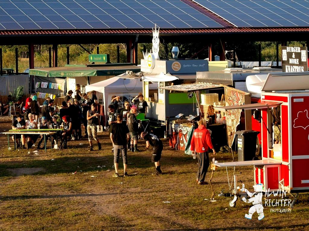 Alles was das Herz begehrt: Merch-, Info-, Getränke- und Fressstände (Fleisch und vegan) laden zum Schnacken, Trinken und Mampfen ein – seit 2016 gibt es vormittags auch einen Frühstücksstand auf dem Zeltplatz