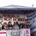 Im Laufe der Zeit entwickelte sich im Biesdorfer Park ein solcher Rückzugsraum. Mit täglich knapp 60 Leuten wurden wir dort irgendwann zu einem Dorn im Auge der Bezirksverwaltung. Sie versuchten mit allen Mitteln uns dort wegzubekommen: von Umzäunung, Sperrzeiten, Wachschutz, Wachhund bis hin zur Video- und Zivilüberwachung war alles dabei. Als uns dann auch noch eine Hundertschaft Cops in Vollmontur auf den Hals gehetzt wurde, war endgültig eine brisante Schwelle überschritten.